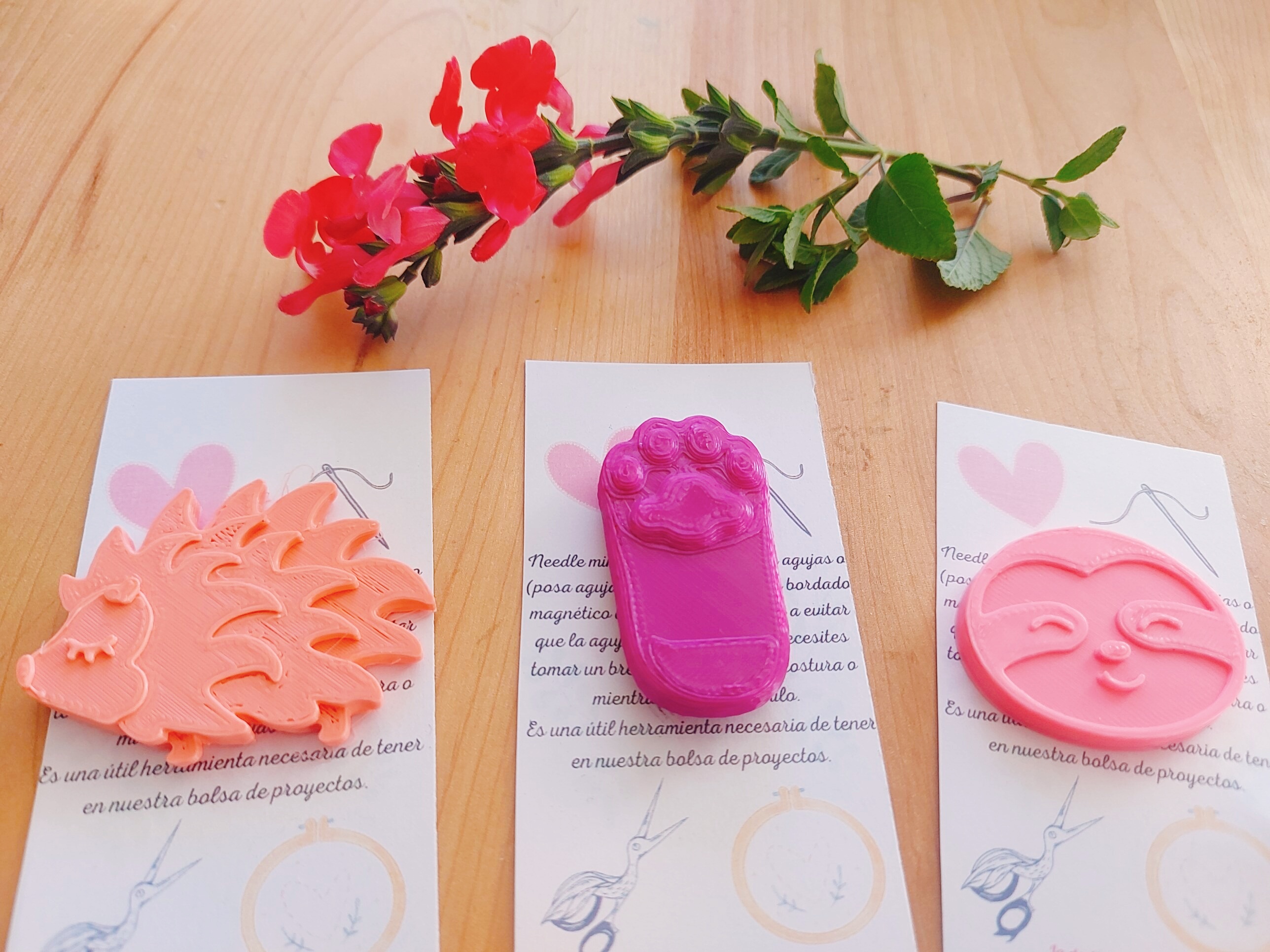 SET DE 3 needle minders (patita , oso perezoso , erizo de tierra )por $5.000